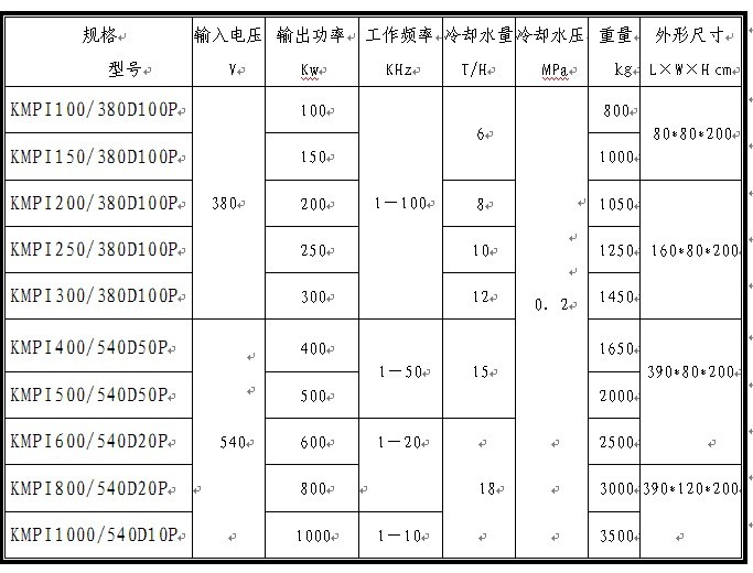 IGBT感應加熱電源技術參數